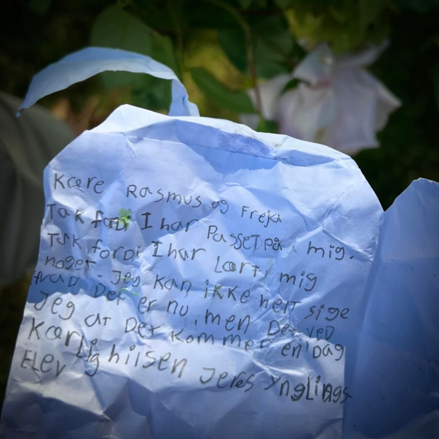 Jeg nåede lige at redde Kirstens kort til skolelærerne, før hun fortrød og smed det i skraldespanden. Rasmus og Freja fik måske ikke deres sommerhilsen før ferien, men nu får de den her, og måske er der flere lærere på linjen, der kan bruge den.