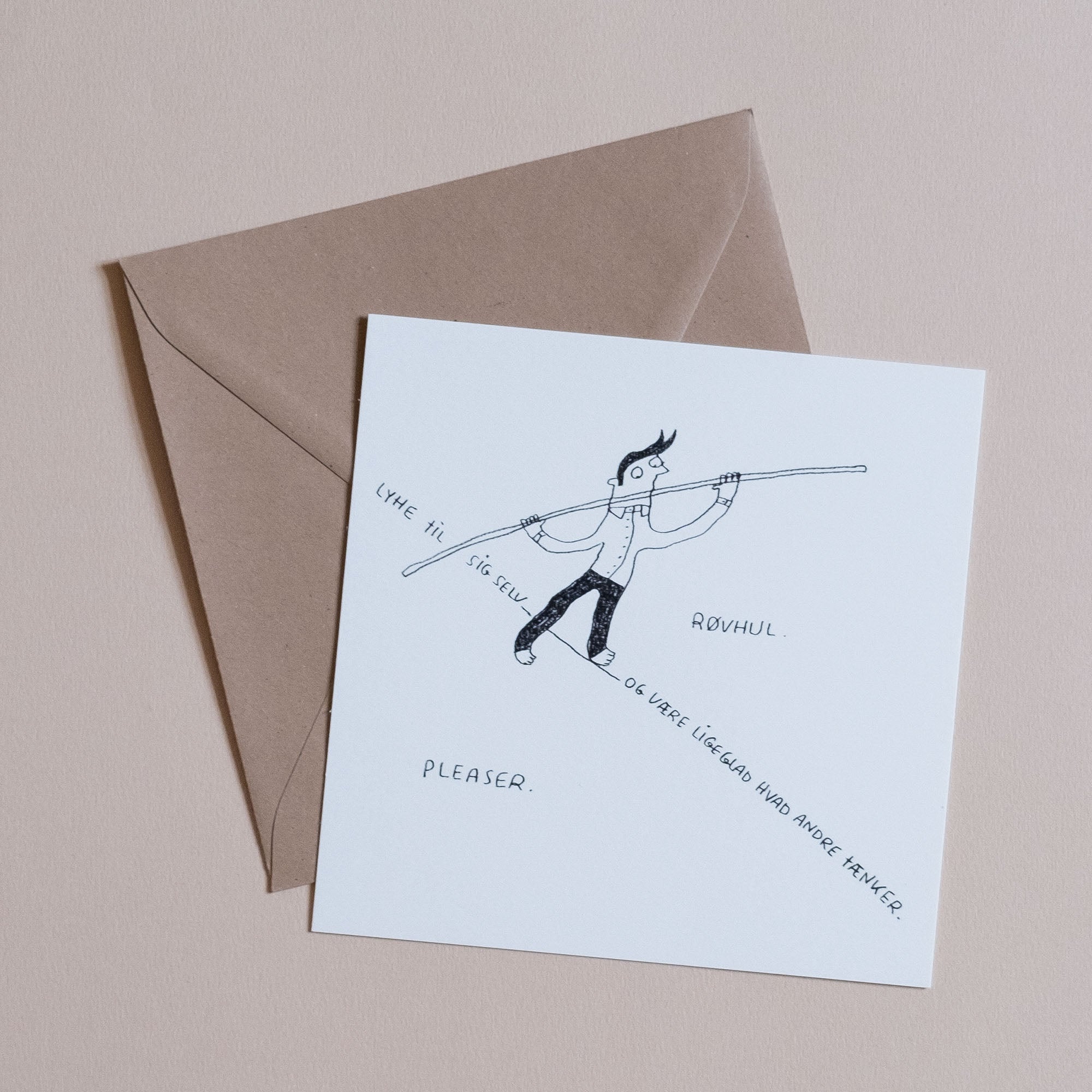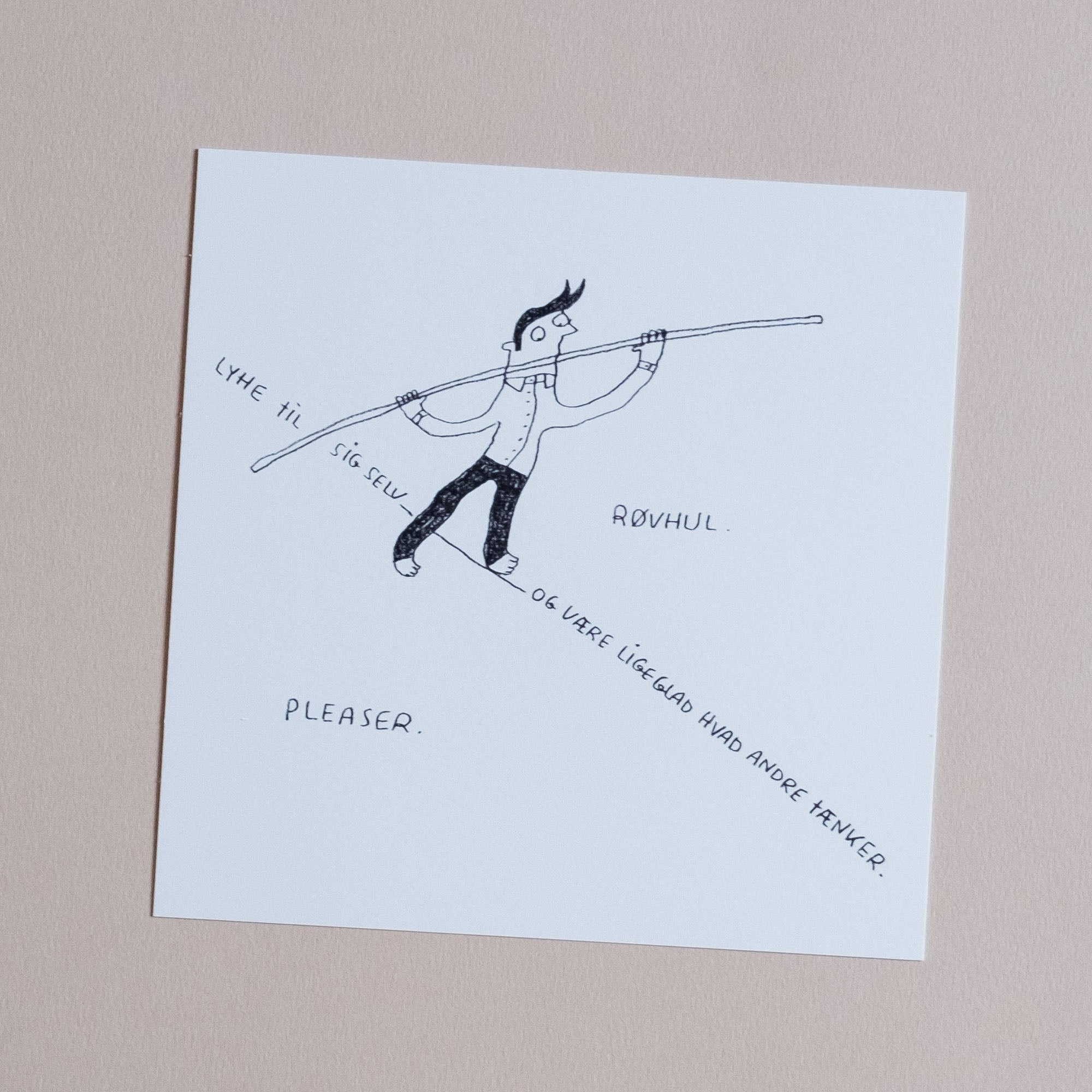 Men denne gang gav jeg mig. Flere af jer ønskede jer Linedanseren i drengeversion (eller lad os kalde det korthårsversion) til jeres konfirmander, og jeg kunne godt se at røvhul/pæn pige trods alt var lidt meget at bede de unge mænd identificere sig med. Så jeg har lavet en udgave, hvor Kjeldsen balancerer mellem røvhul og pleaser. I øvrigt en balancegang jeg selv til stadighed snubler i på daglig basis.