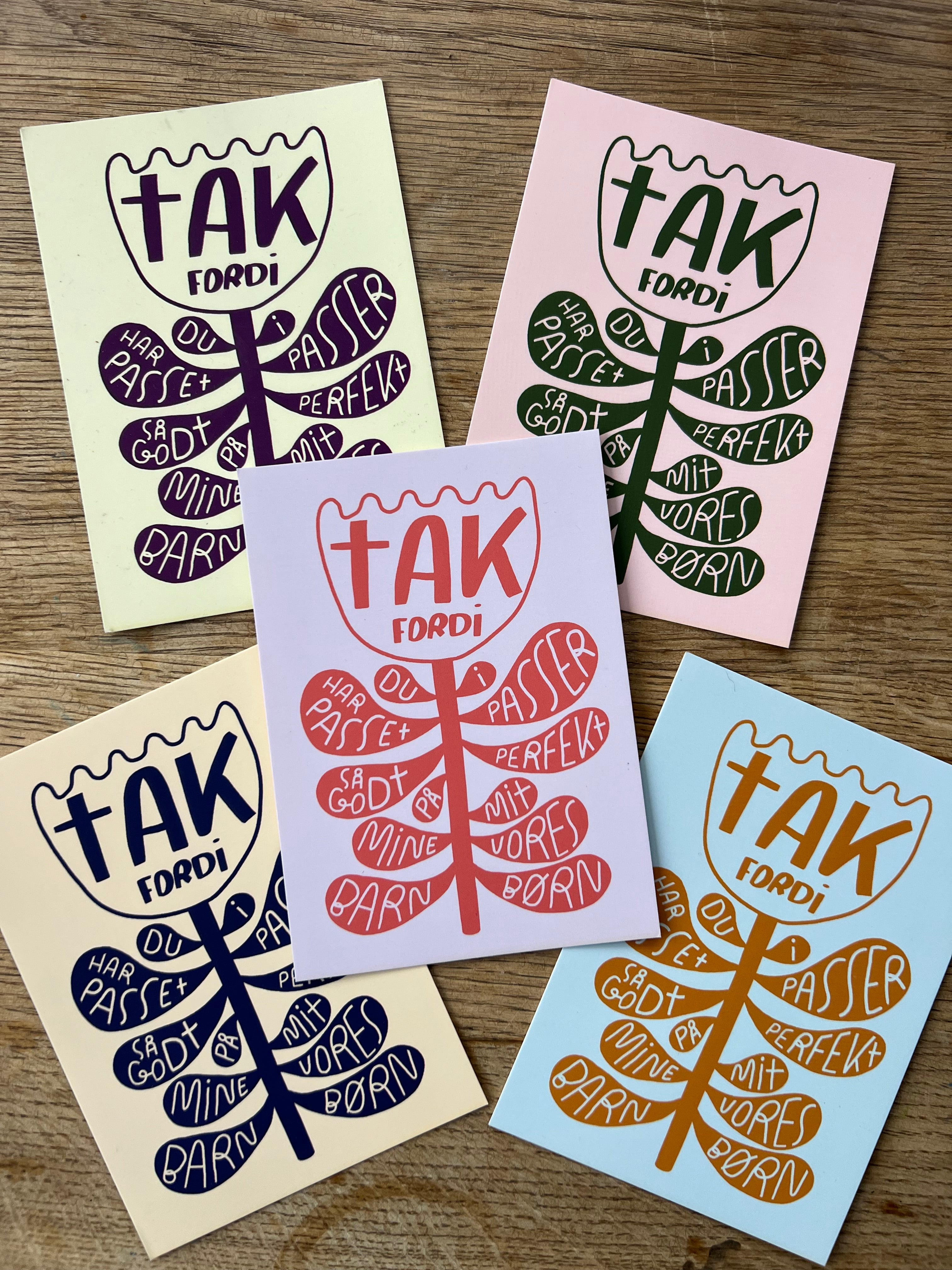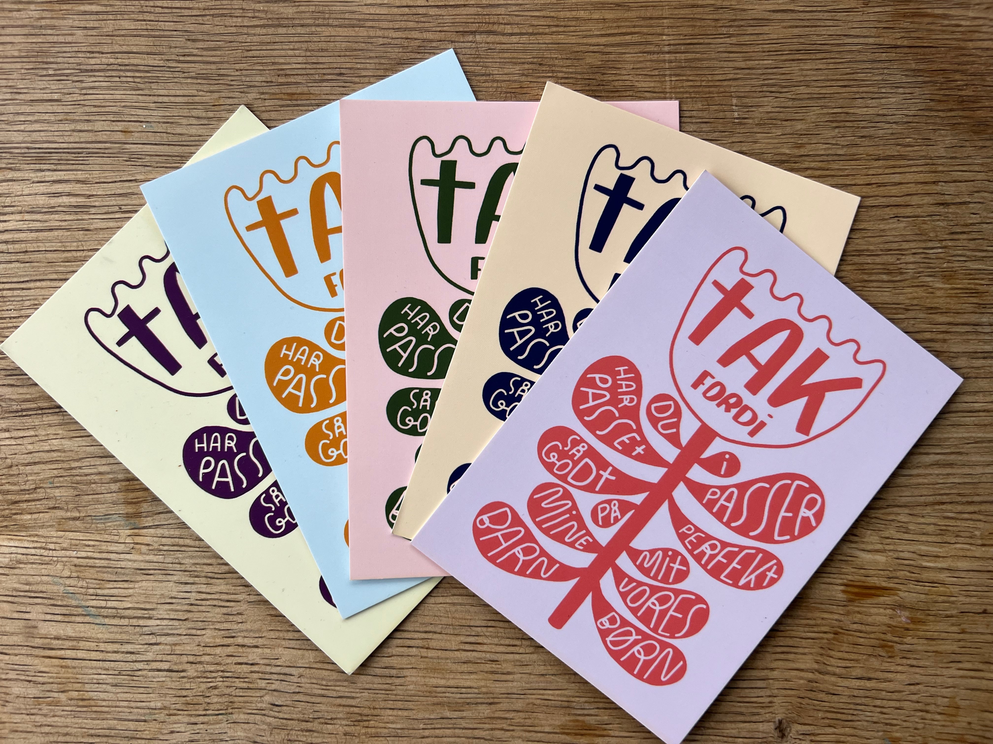 Tak fordi du/I passer/har passet så godt/perfekt på mit/vores … barn/børn 🫶🏼 Pakke med fem A6-kort